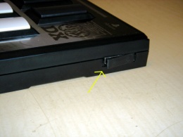 Zunächst entfernt man die Gummiabdeckung an der Seite des Tastenfeldes.