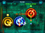 Im Anschluss bei Sekunde 66 folgt eine Sektion, welche die schon bei Sekunde 80 vorhandenen Kombinationen aus einem Follow und zwei gleichzeitig gespielten Omnitaps hat. Es beginnt mit einem Follow in der linken Bildschirmhälfte, welcher aber diesmal mit einer grünen Note startet. Die beiden Omnitaps werden mit dem rechten Finger abwechselnd gespielt, alternativ kann man auch zwei Finger der rechten Hand nutzen. Es beginnt mit einem blauen Zeiger auf dem linken Omnitap, vier weitere folgen im Abstand von einem Achteltakt. Im Anschluss daran spielt man die gleiche kombination noch einmal, nur beginnt hier der erste Omnitap auf einer roten statt auf einer blauen Note.