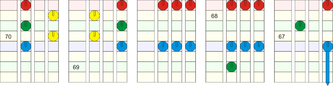 Der Übersichtlichkeit halber weicht dieses Bild von der üblichen Notendarstellung etwas ab. SO gibt es für den linken und rechten Finger jeweils zwei aneinanderliegende spalten, da dort oft zwei Omnitaps parallel mit einer Hand zu spielen sind. Desweiteren wird auf Zeitangaben verzichtet, da niemand in der lage sein dürfte während des Spielens auch noch auf den Timer zu achten, es ist nur wichtig zu wissen, dass die Stelle be Sekunde 57 anfängt.